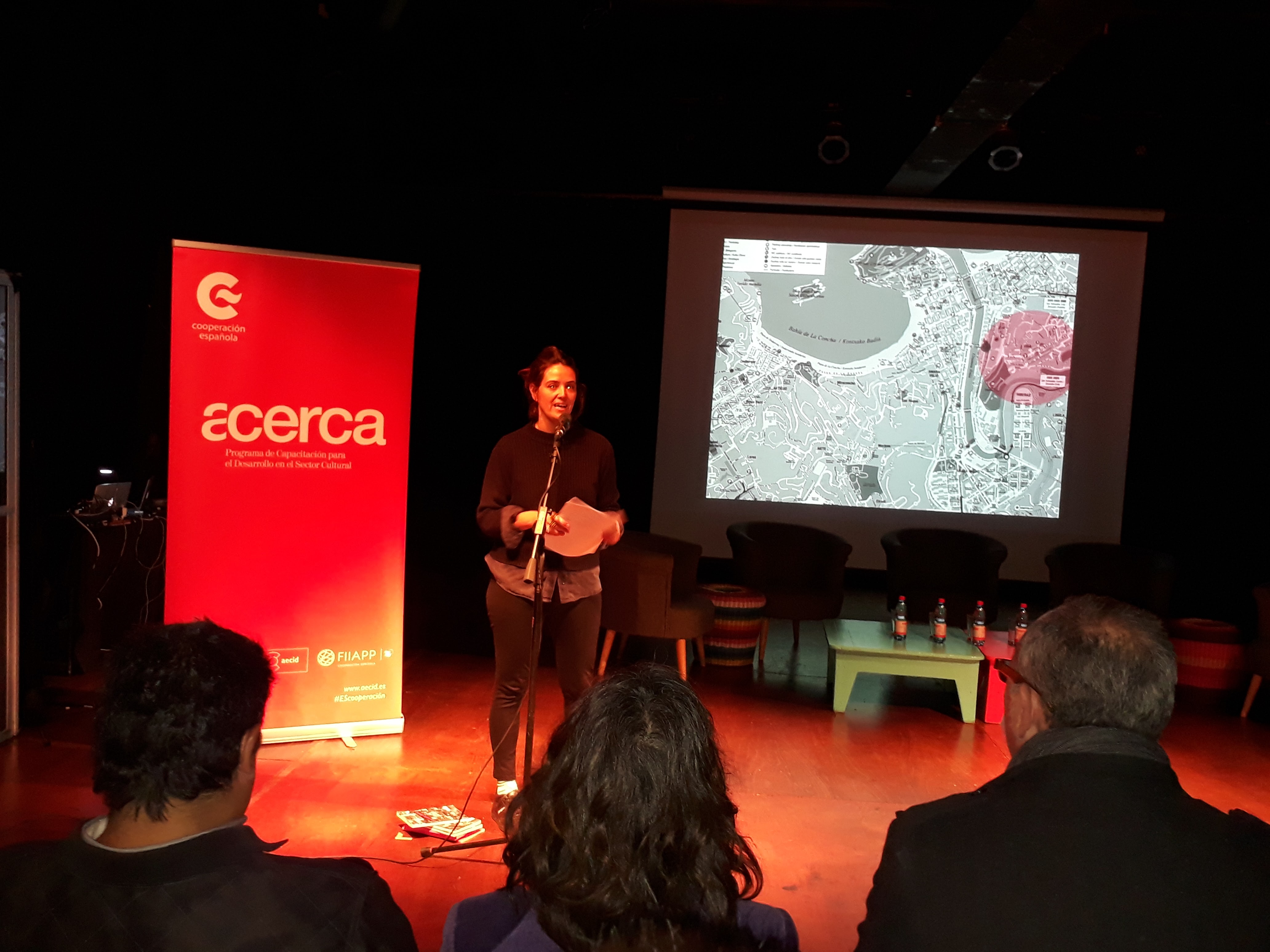En cuanto al propio evento, si bien es cierto que las instalaciones eran correctas y organización fue excelente, incluido servicio técnico (luces, sonido etc), eché en falta un poco de flexibilidad en el tiempo de las ponencias. Tuve la sensación de que alguna de las charlas, como es el caso de Leire San Martin, invitada ACERCA, que presento el trabajo que desarrolla en Tabakalera Donosti, hubiera sido más provechosa si se le hubiera dado algo más de tiempo para explicar su proyecto. En este caso, su proyecto llamado “Harrotu Ileak” (“desmelénate” en español), fomenta que los jóvenes asuman el entorno como suyo, y decidan de alguna manera cómo quieren usarlo. Por supuesto, entiendo que todas las actividades tienen un ritmo y unos tiempos que hay que seguir, pero en este caso me quedé con ganas de saber más. Me ocurrió justo lo contrario con el discurso de Nick Owen, quien habló del impacto que tienen las artes y la cultura entre las comunidades inmigrantes en el Reino Unido. Encontré esta charla demasiado teórica, y en mi opinión no existía una conexión entre su discurso y los demás ponentes.